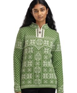 Dale of Norway Women’s Peace Wool Sweater – Nordic Wool Knit In Green | Spring Green Offwhite