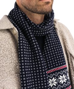 Women’s Dale Of Norway Utsira Tubular Scarf – 100% Wool Patterned Scarf | Marine Redrose Offwhite