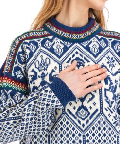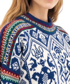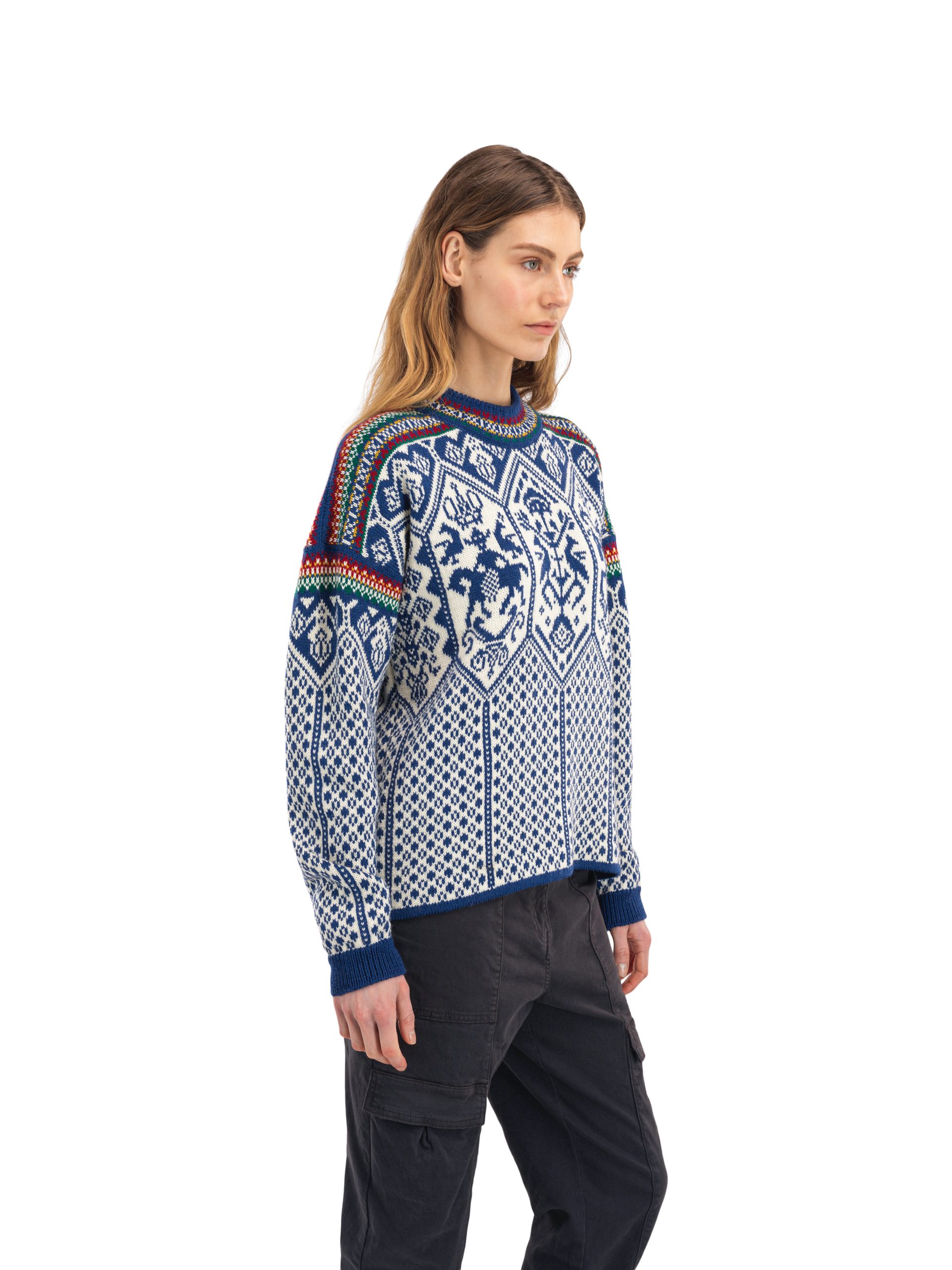 The updated 1994 sweater retains the distinctive symbols inspired by Norse mythology but is crafted in a thinner, softer yarn, with an improved fit and refreshed color palette. Knitted at our factory in Dale, Norway, it is made of 100% wool – just like the original.