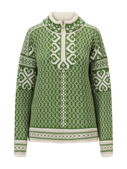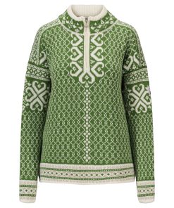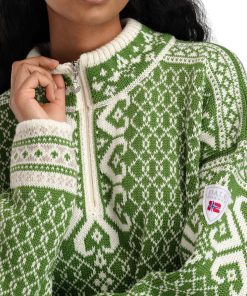 A heavy knitted, detailed, patterned wool sweater with a relaxed fit. The sweater has a semi-high neck with zipper and is knitted in 100% long-lasting wool. You can use Leknes both as a hiking sweater and for everyday wear. With a traditional Norwegian pattern and updated fit, this is a wool sweater that is both timeless and nostalgic.