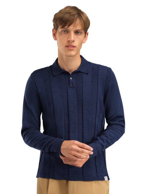 Dale of Norway Men’s Polo Shirts Navy Merino Wool Polo – Nanes Long-sleeve Shirt | Marine Offwhite