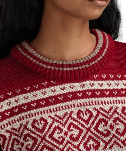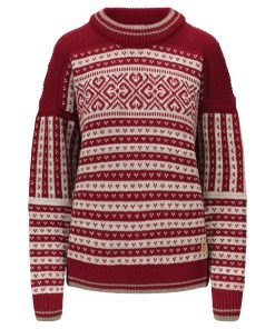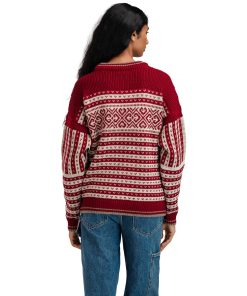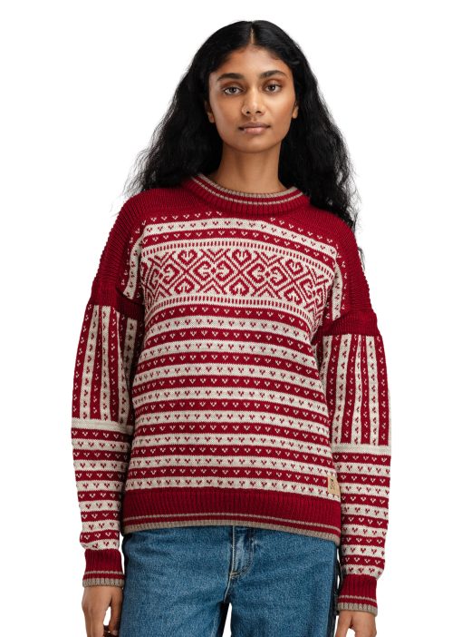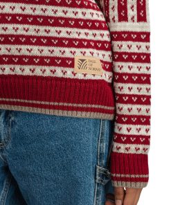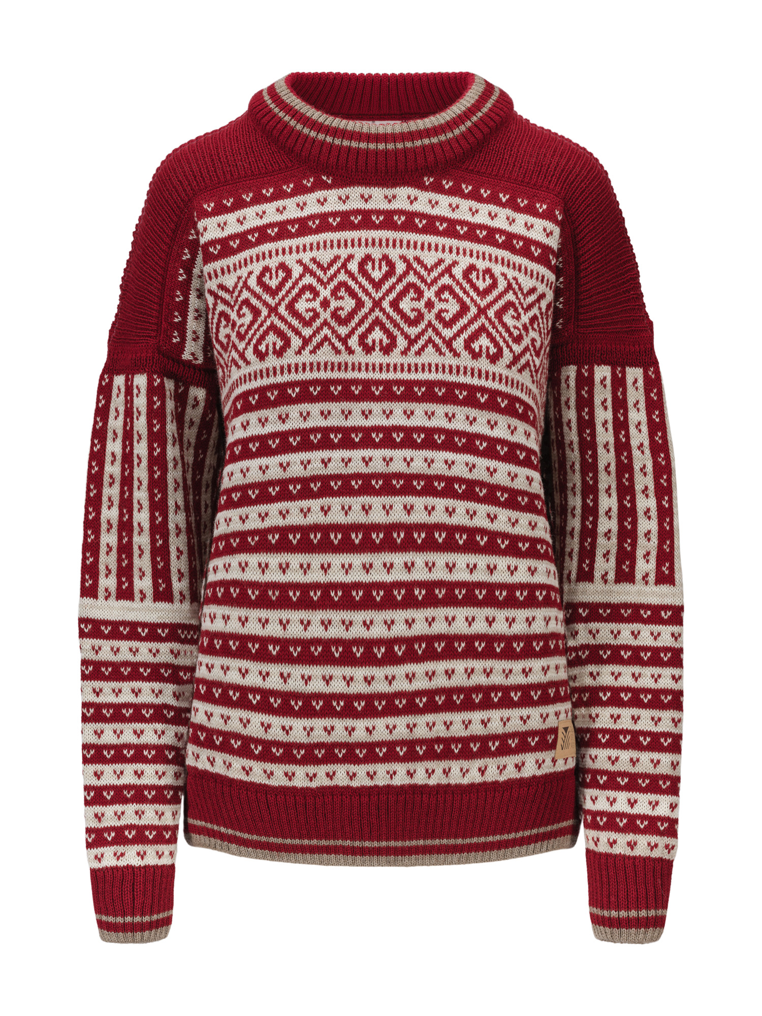The Ramberg sweater brings a unique urban flair to a timeless design. With a relaxed fit, ribbed shoulder details highlighting the drop shoulder, and striking contrast stripes at the neck, sleeves, and bottom hem, Ramberg effortlessly merges classic and contemporary. Inspired by the historic Fana sweater, Ramberg reimagines this heritage piece for today. The classic stripes are updated with a rounded eight-petal-rose design around the chest and a traditional lice pattern, while shoulder accents and stripe rib finishes add a fresh, dynamic touch. Multiple yarn colors blend in the thread mix, giving the Ramberg a vibrant, urban character.