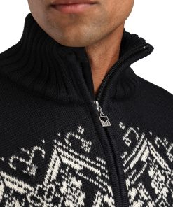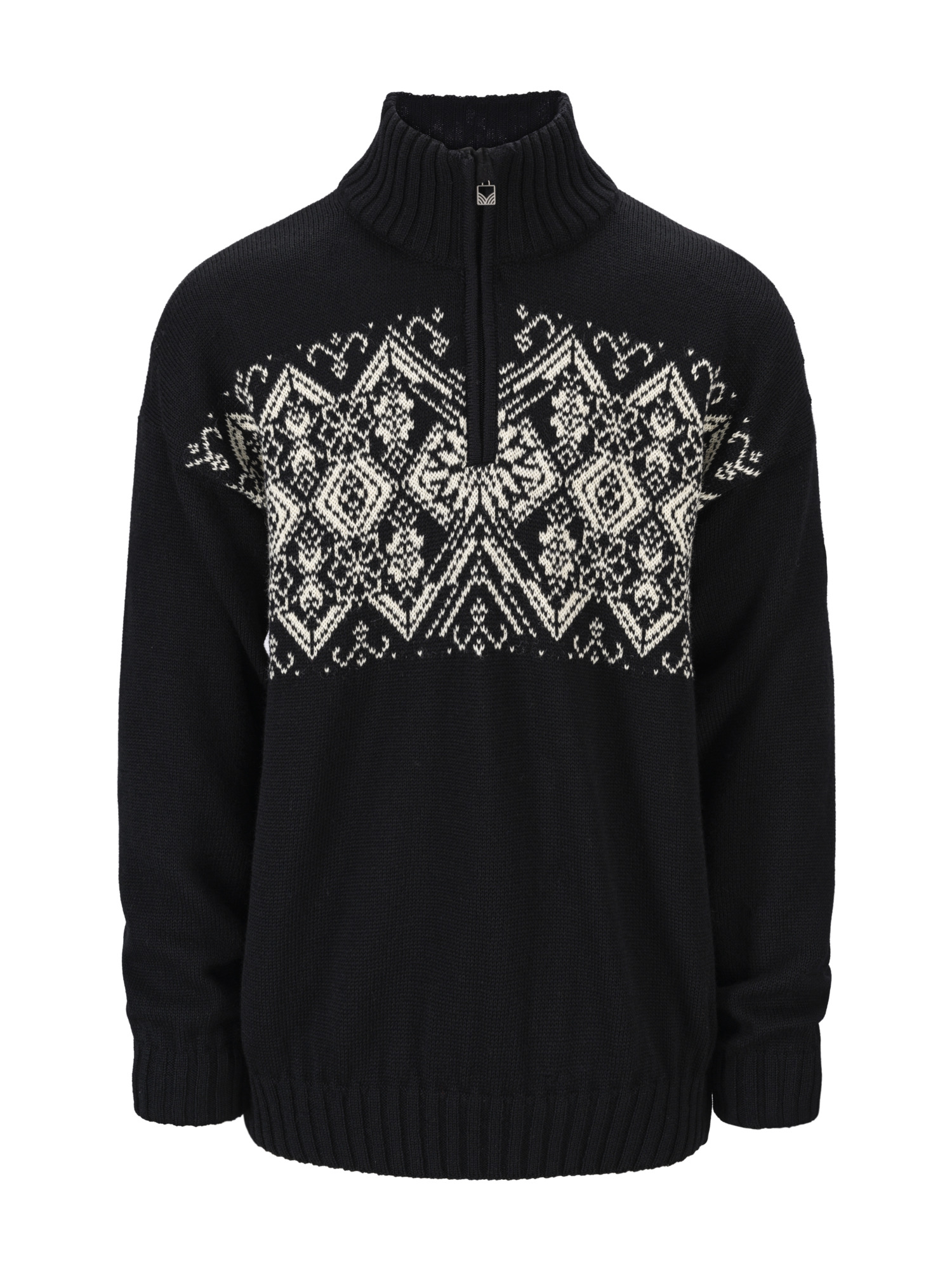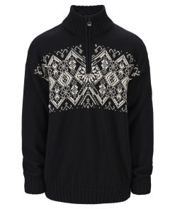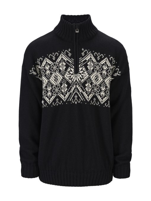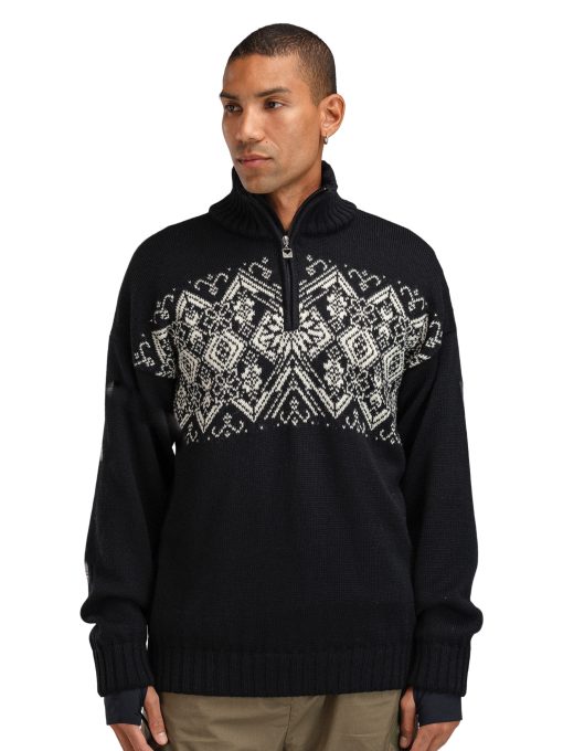 Dale of Norway Roset Men’s Sweater – Black Windproof Wool Knit | Black Offwhite | Men’s Jackets