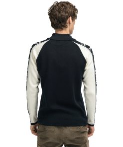 Dale of Norway Skarstind 1879 Men’s Sweater In Black – Merino Wool With Zip Neck | Black Offwhite | Men’s Sweaters
