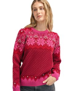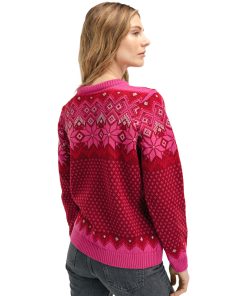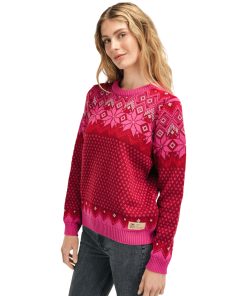 A wool sweater with an enlarged pattern, a round neck and a slightly relaxed fit. With an enlarged version of the classic Norwegian eight-petal rose and ‘luse’ pattern, the sweater has a 1950s’ and 60s style. The sweater is knitted in 100% long-lasting wool.
