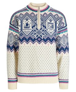 Dale of Norway Vm Trondheim Men’s Sweater – Official 2025 World Championship Ski Sweater – White | Offwhite Indigo Orchid | Men’s Sweaters