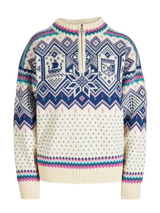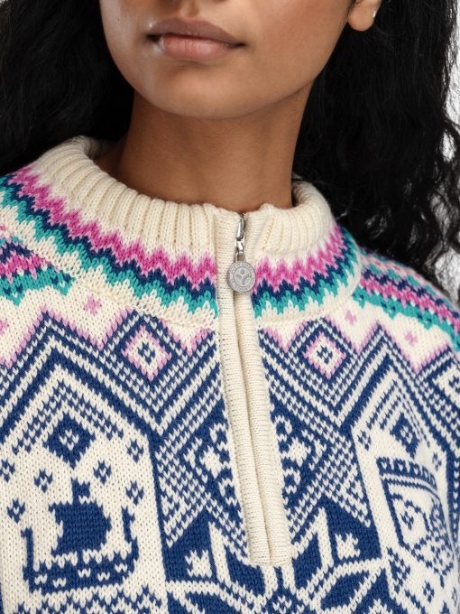 Dale of Norway Vm Trondheim Women’s Sweater – Official 2025 World Championship Ski Sweater – White | Offwhite Indigo Orchid | Women’s Sweaters