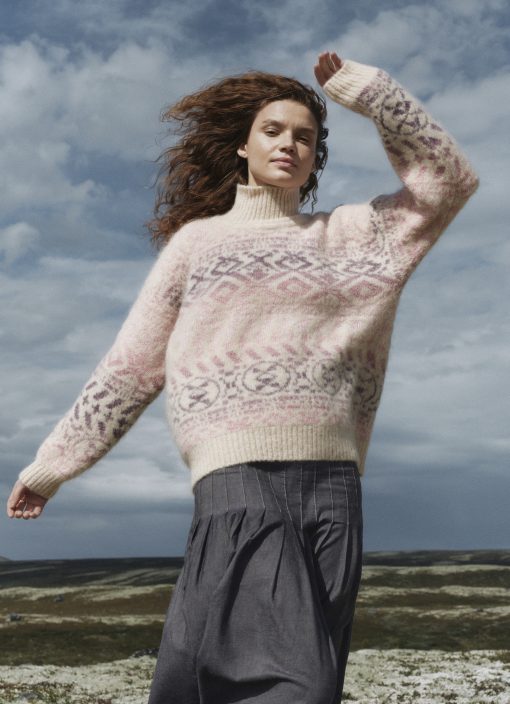 Dale of Norway Women’s Highland Sweater | Pink | Soft Alpaca & Cotton Knit | Offwhite Pink Ombre