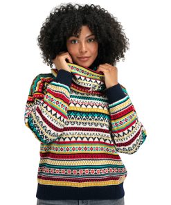Women’s Dale Of Norway Utsira Tubular Scarf – 100% Wool Patterned Scarf | Marine Redrose Offwhite