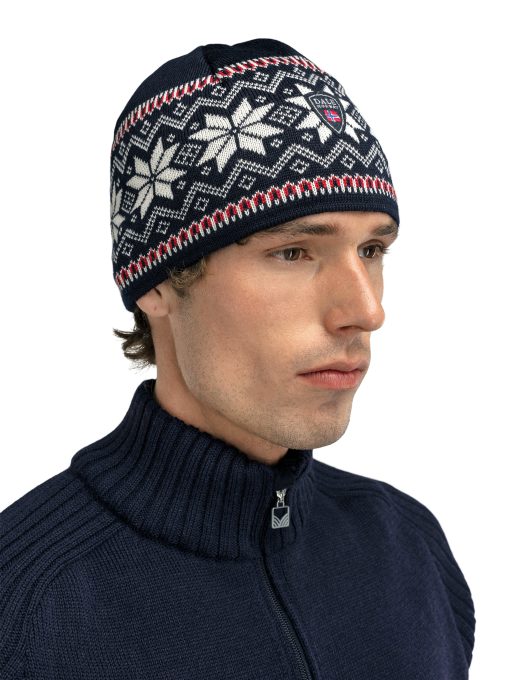 Women’s Garmisch Hat – Unisex – Navy – Dale Of Norway | Navy Offwhite Red